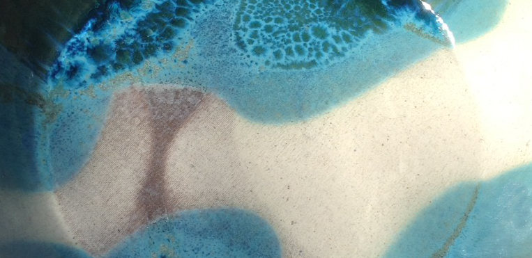 青黒色に焼き上がった中に星空を連想させる結晶ができるのが特徴です。